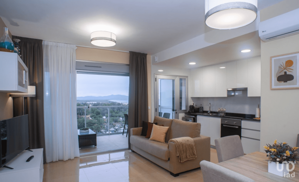La vivienda de 83 metros cuadrados consta de dos habitaciones con televisores incluidos, dos baños, salón comedor, cocina con todos los electrodomésticos (lavavajillas, horno, extractor de humos, vitrocerámica…) y una terraza con vistas a la playa y la montaña. El apartamento se encuentra, además, en una comunidad con dos piscinas, parque infantil, plaza de garaje y trastero.
